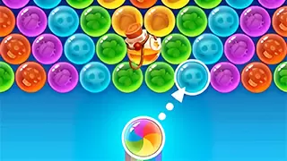 All you need to do is to shoot the bubbles on the colored field to get combinations of 3 or more bubbles of the same color. The more bubbles you shoot down in one shot, the more points you get. Dropping bubbles and hitting the wall will give you twice as many points! The playing field will fall if you fail to collect a combination.